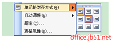 執行快捷菜單命令“單元格對齊方式”單擊對齊方式列表中的第5個按鈕