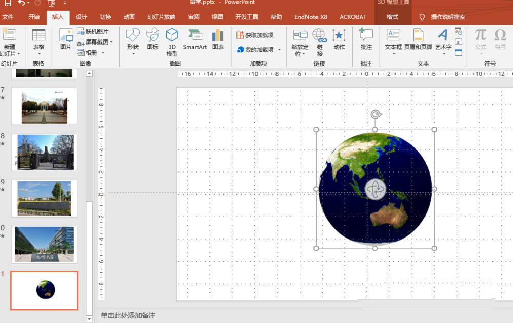 2、如圖中所示的地球3D模型,無法導出任何一種格式都無法直接以文件形式直接導入PPT。