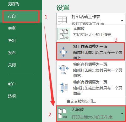 解決方法:打印【設置】——【無縮放】——【將工作表調整為一頁】