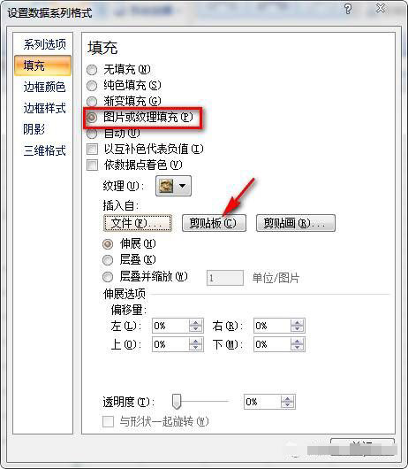 在“設置數據系列格式”對話框的“填充”選項卡中,進行如下圖所示的設置。