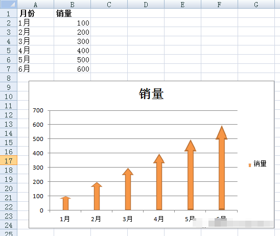 單擊“剪貼板”,Excel將使用剛才繪制的箭頭代替柱形條。
