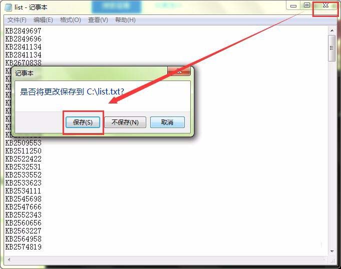5、然后關閉該list文本,在彈出的提醒窗口中,選擇【保存】