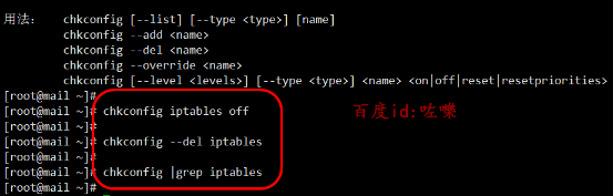 2、關(guān)閉步驟: 先停止chkconfig iptables off 開(kāi)機(jī)項(xiàng)目,然后移除,最后再查一次
