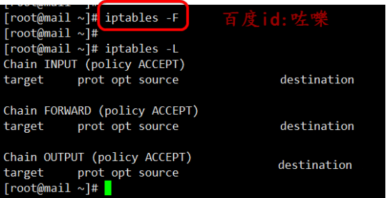 如果只需要?jiǎng)h除iptables防火墻規(guī)則,可以通過(guò)iptables-F 清除列表規(guī)則(iptables -L 列出當(dāng)前的iptables規(guī)則)