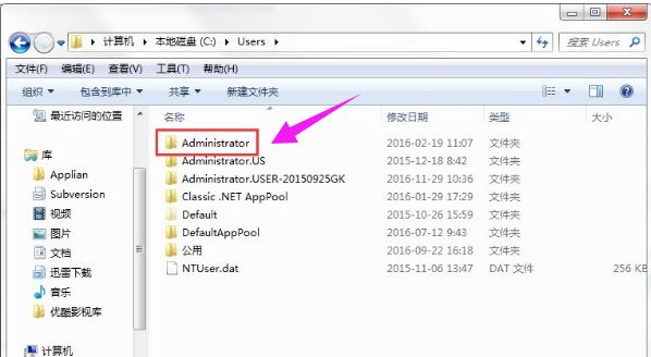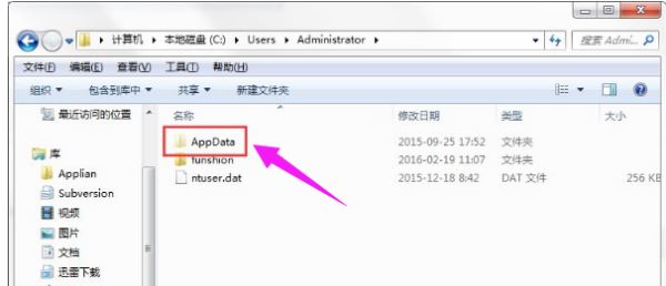 5.打開AppData文件夾(系統文件被隱藏,可能會看不見)