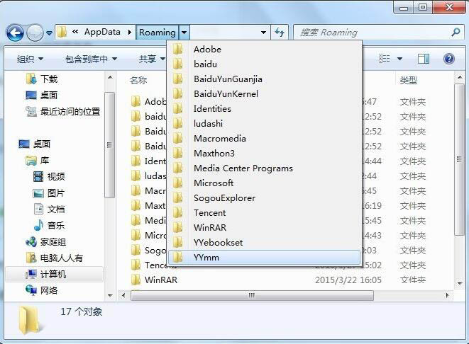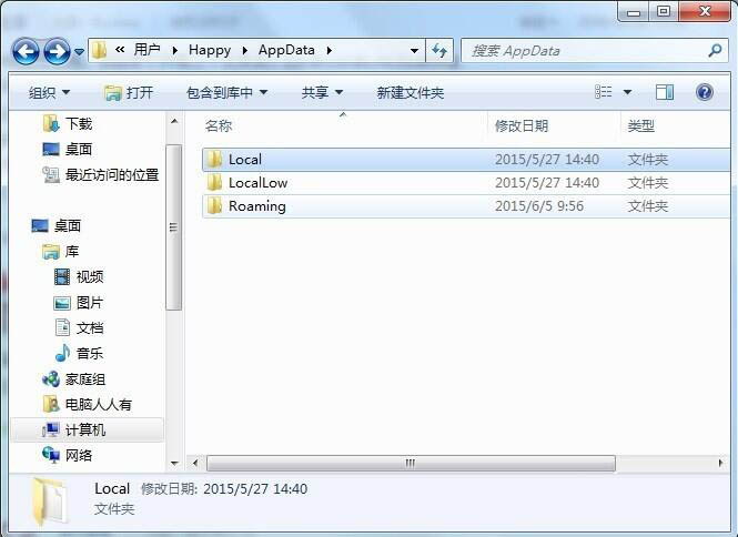 打開AppData文件夾,里面有三個文件夾Local、LocalLow、Roaming。