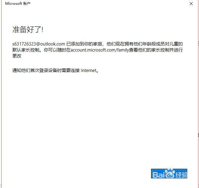 10、然后返回當前頁面,在家庭賬戶下我們看到我們新增的兒童賬戶添加了進去,說明兒童賬戶模式增加成功。小孩以后上網就可以用這個新增加的兒童賬戶登錄上網。