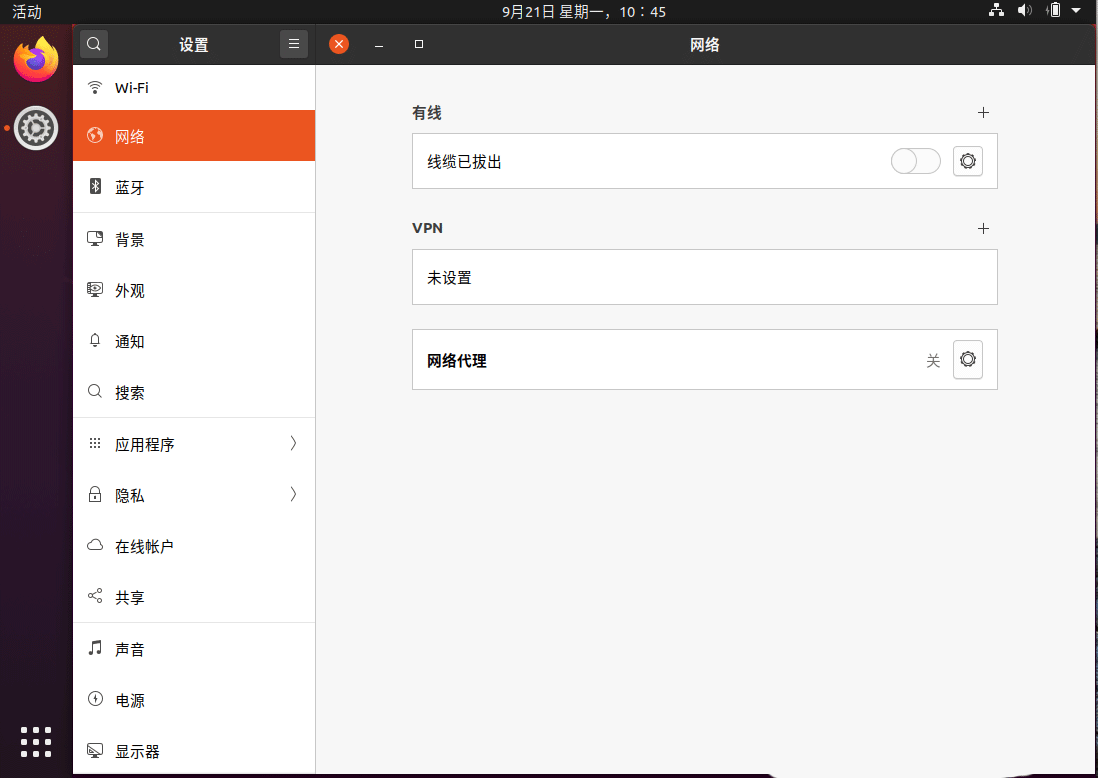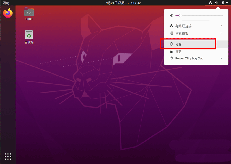 1、進(jìn)入ubuntu20.04桌面右上角選擇 設(shè)置。