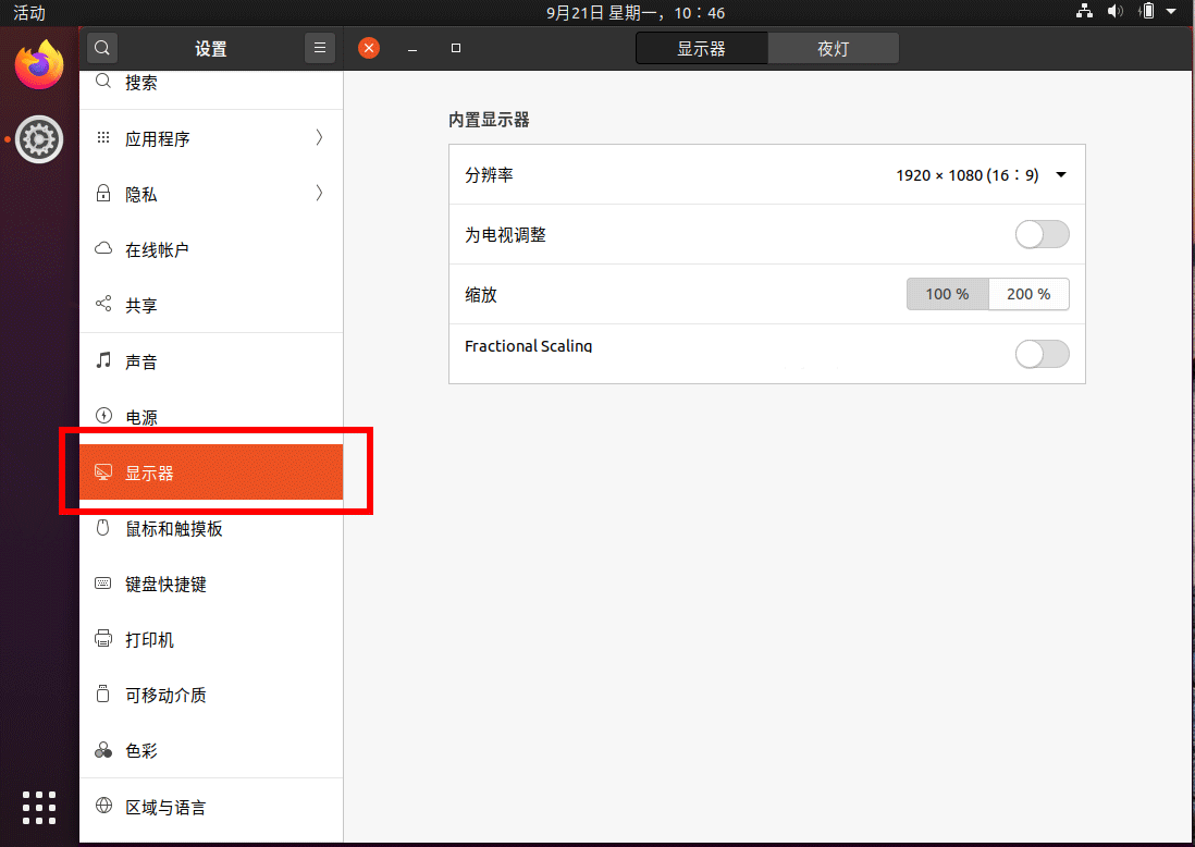 4、開啟Fractional Scaling,頂面可以選擇縮放的倍數(shù),讓字體變大。