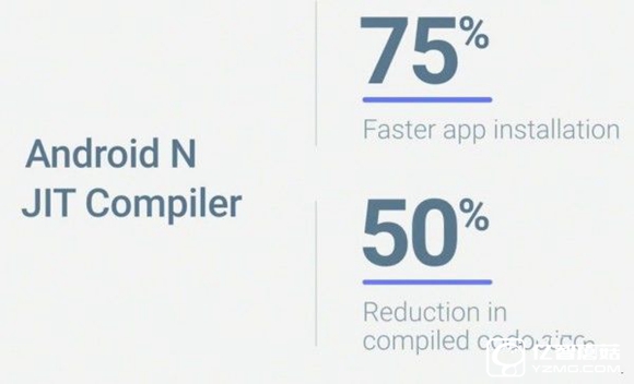 據谷歌官方PPT顯示,Android N操作系統代碼量減少50%、全新JIT編譯器安裝速度提升75%,并減少50%應用程序代碼,且應用運行速度提升幅度高達600%。
