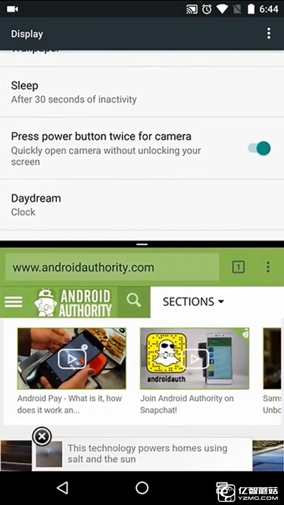除了后臺機制改進,Android N還提供了原生的分屏多任務功能。該功能無需多言,各大OEM廠商早已稔熟于心。