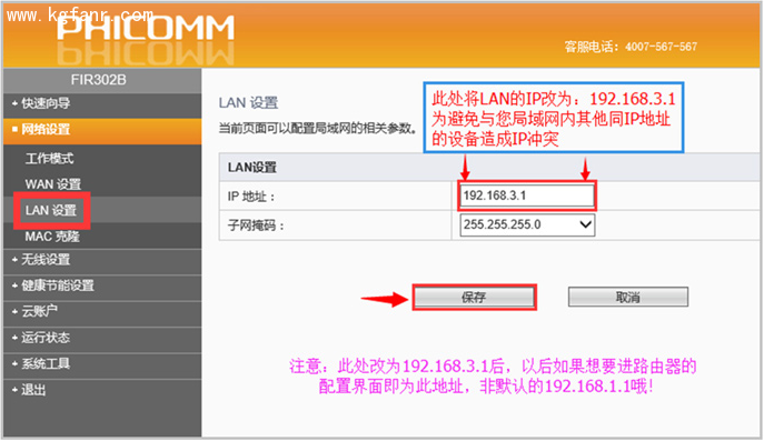 把默認的192.168.1.1改成192.168.3.1為了避免部分用戶局域內同IP的設備造成沖突。