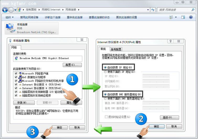 1、在進路由器的配置界面前先檢查電腦是否網絡連接為自動獲取,以免IP非同網段無法進入配置界面。(如確定已是自動獲取則直接來到第三部分設置)