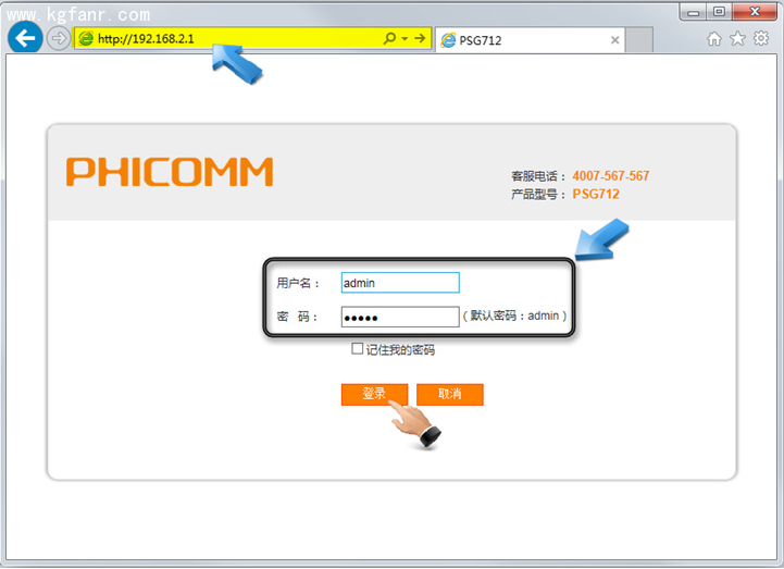 ▲打開瀏覽器,地址欄中輸入,92.168.2.1進入到路由器的設置界面