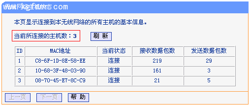 例如:在使用環境中,你確認只有2個無線終端連接了無線網絡,但無線主機狀態卻顯示當前的主機數為3個,那就說明你的無線網絡被蹭網了。