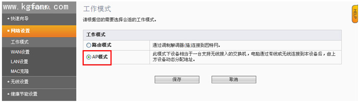 如果您在【工作模式】選擇中選擇了【AP模式】,就不用進行上一步禁用DHCP了,【AP模式】默認情況下DHCP服務器是禁用的。