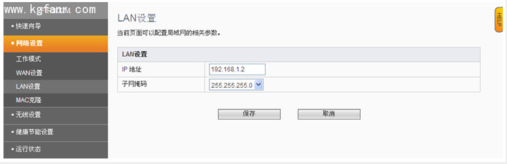 3. 管理地址修改。建議把副路由器的IP 改成192.168.1.2(與主路由器管理地址最后一位不同就行),以方便管理。