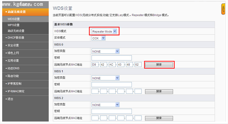 4. WDS設置。備注:此時需登陸修改后的192.168.1.2進入界面。