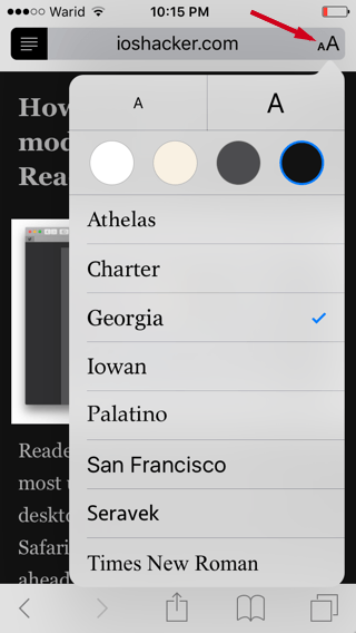 除了背景顏色之外,你還可以在這里選擇不同的字體或者顏色,iOS 9 全新的閱讀視圖模式為用戶提供了更多權限,那么現(xiàn)在你期待 iOS 9、或者是增強后的 Safari 的到來嗎?