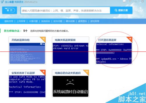 我電腦裝了i,e10.用了幾次后就藍屏,一打開就藍屏。通過金山安全衛士修好了。