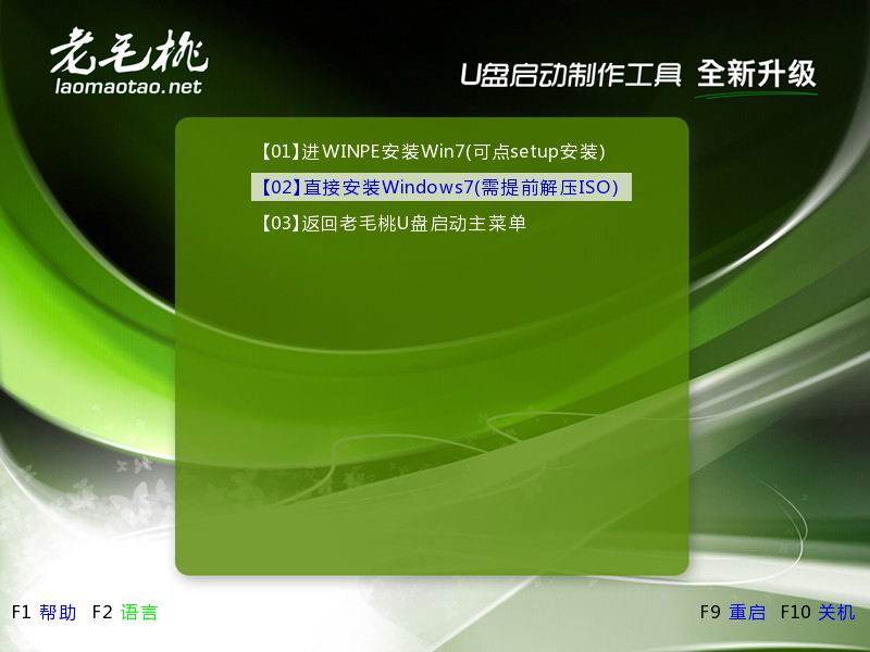 4、用U盤啟動電腦,選擇菜單11,然后選擇菜單2直接安裝Win7原版操作系統。