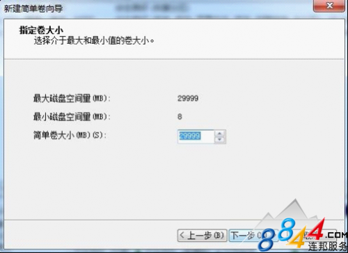 鍵入要創建的卷的大小(MB)或接受最大默認大小,然后單擊“下一步”。
