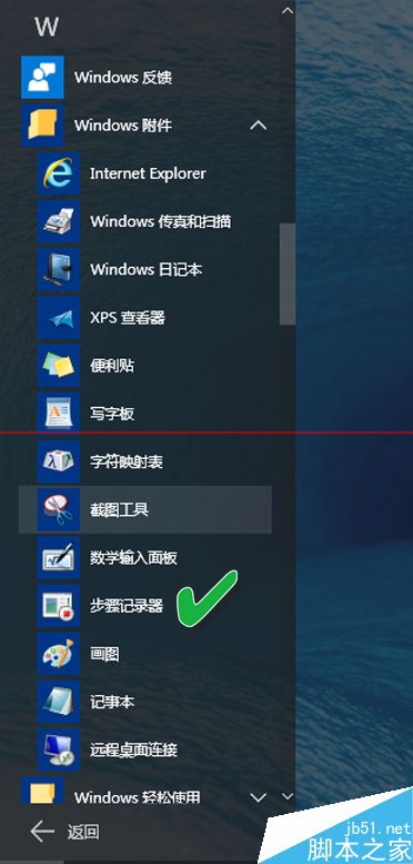 1、通過開始菜單的“所有應用→Windows附件”來打開“步驟記錄器”