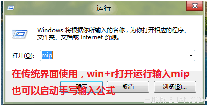 4、在傳統界面下也可以開啟,使用 Win+R 熱鍵調出運行對話框,輸入“mip”后點擊確定即可。如下圖所示: