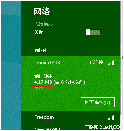 操作步驟:1、單擊桌面右下角的信號圖標;2、和win7不一樣的是單擊win8系統下面的無線信號小圖標跳出的選擇;3、右擊選擇已連接好的無線信號,跳出的選項有“顯示和隱藏預計數據使用”&ldquo...