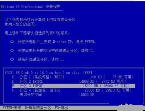 2.由于該分區(qū)是在Win7當(dāng)中創(chuàng)建的,因此XP安裝程序無法識別,所以還需要在下一步中再次進(jìn)行格式化操作。