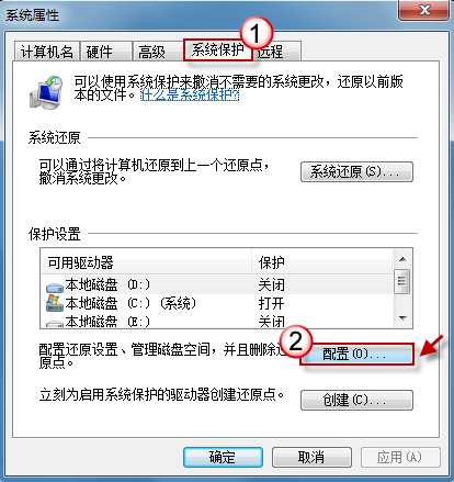 點擊“系統保護”選項卡。按一下“配置”按鈕。