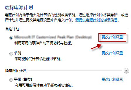 找到當前使用的電源計劃,按一下“更改計劃設置”鏈接。