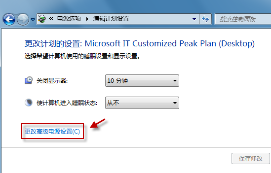 單擊“更改高級電源設置”。