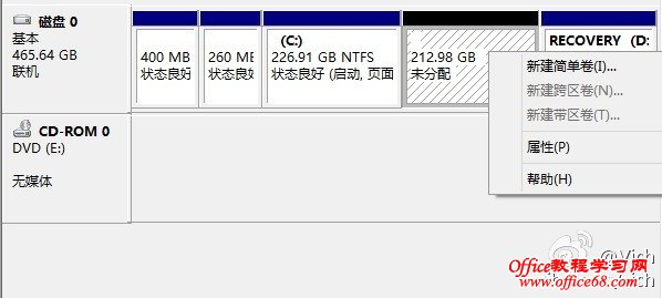 首先來看預裝window8系統的磁盤分區,一般是一個系統盤和一個系統恢復盤。我們需要把C盤減小,然后騰出空間做為其他分區。