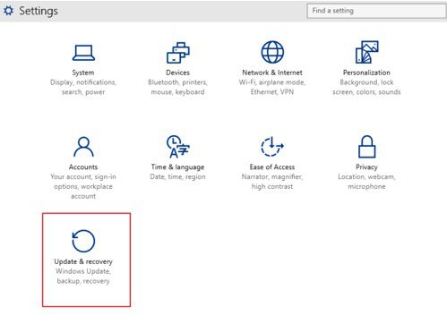 2、在電腦設置中點擊最后一個板塊——更新&恢復。