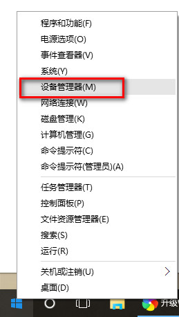 在左下角開始菜單上右鍵單擊,選擇“設(shè)備管理器”。