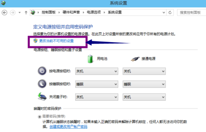 6、選擇更改當(dāng)前不可用設(shè)置,如下圖所示
