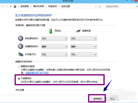 7、勾選下方的不需要密碼,點(diǎn)擊保存修改按鈕,如下圖所示