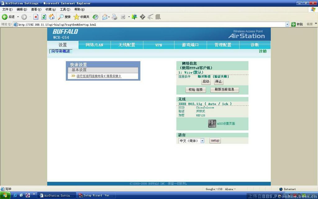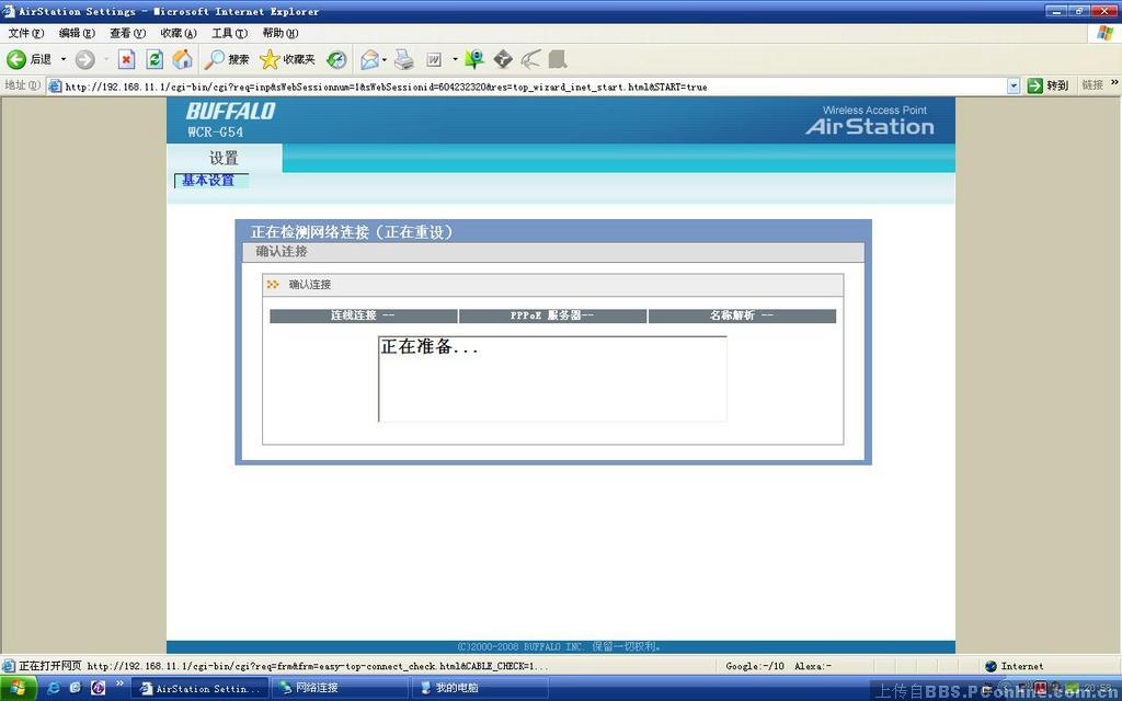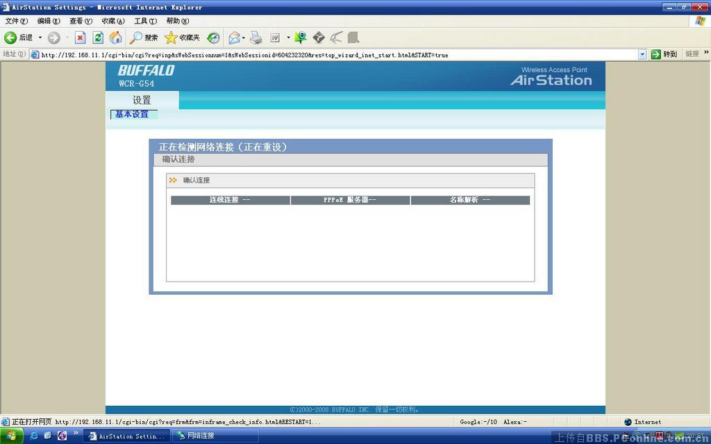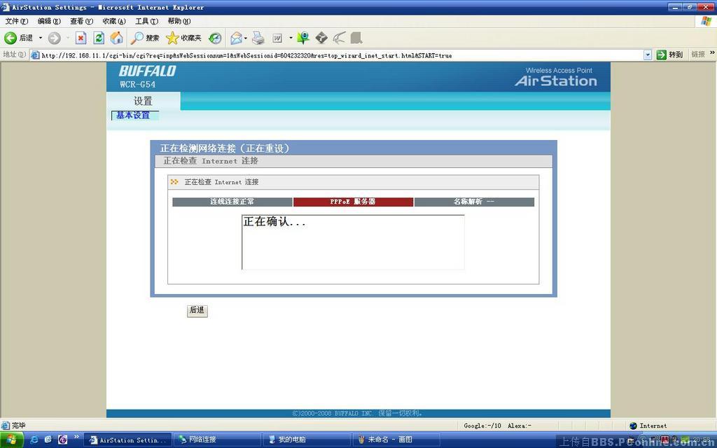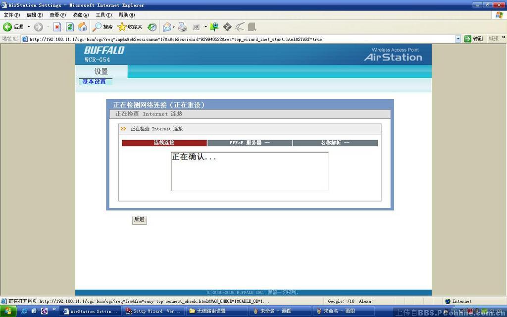 基本設置中的運行互聯(lián)網(wǎng)連接向?qū)Э梢詸z測無線路由是否設置成功,點擊后開始檢測與互聯(lián)網(wǎng)是否連接: