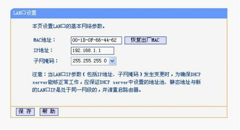 MAC地址是本路由器對局域網的MAC地址,此值不可更改。IP地址是本路由器對局域網的IP地址,局域網中所有計算機的默認網關必須設置為該IP地址。需要注意的是如果改變了LAN口的IP地址,必須用新的IP地址才能登錄本路由器進行WEB界面管理。