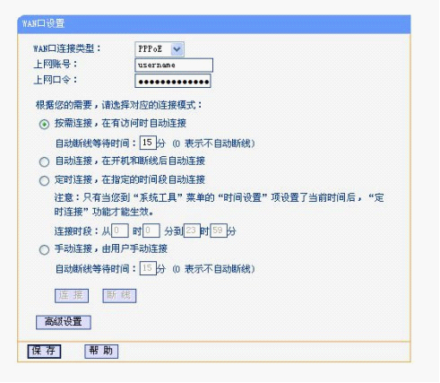 WAN口連接類型是指本路由器支持三種常用的上網方式,請您根據自身情況進行選擇。如果您的上網方式為動態IP,即您可以自動從網絡服務商(例如:中國電信)獲取IP地址,請選擇“動態IP”;如果您的上網方式為靜態IP,即您擁有網絡服務商(例如:中國電信)提供的固定IP地址,請選擇“靜態IP”;如果您上網的方式為ADSL虛擬撥號方式,請選擇“PPPoE”。????上網賬號和上網口令中填入ISP為您指定的ADSL上網帳號和ISP指定的 ADSL上網口令。如果選擇了按需連接,則在有來自局域網的網絡訪問請求時,自動進行連接操作。如果自動斷線等待時間T不等于0,則在檢測到連續T分鐘內沒有網絡訪問流量時自動斷開網絡連接,保護您的上網資源。此項設置僅對“按需連接”和“手動連接”生效。手動連接是指開機后由用戶手動進行ADSL撥號連接。一般建議選擇按需連接,因為誰不想開機后然后再進行麻煩的撥號了。????此路由器還有MAC地址克隆的功能,MAC地址一般不用更改。但某些ISP 可能會要求對MAC地址進行綁定,此時ISP會提供一個有效的MAC地址給用戶,您只要根據它所提供的值進行綁定,不過大部分的ADSL都不用此功能所以在此就不詳細介紹了。