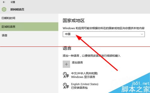 3、在左邊菜單中選擇“區(qū)域和語言,在右邊的“國家或地區(qū)中從下拉菜單中選中一個國家或者區(qū)域,重新打開應(yīng)用商店,展示的應(yīng)用就變成其他區(qū)域的了