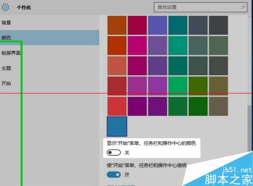 7、在第 4 步驟中,還有一個開關是“從我的背景自動選取一種主題色,如果打開這個開關,則顏色選擇的調色盤消失,應用窗口標題欄會自動采用背景圖片中的一種顏色。