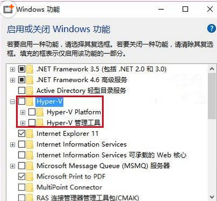 既然如此,也只能暫時委屈一下Hyper-V了,可以在控制面板中卸載后再嘗試升級。進入控制面板→程序和功能→啟動或關閉Windows功能,然后按照下圖所示,直接去掉Hyper-V的勾選,單擊“確定”即可。