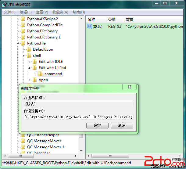 第二個引號里是ulipad.pyw的位置,根據自己的情況填寫,注意大小寫