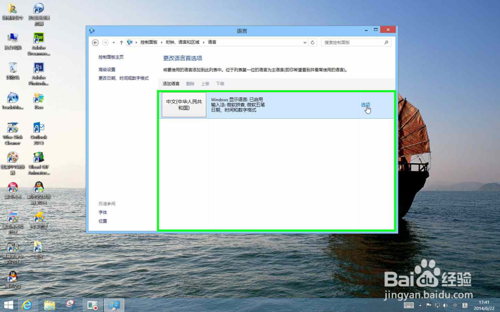 步驟 3: (2014/6/22 17:41:42)用戶在"添加語言 (鏈接)"上左鍵單擊(在"控制面板"中)