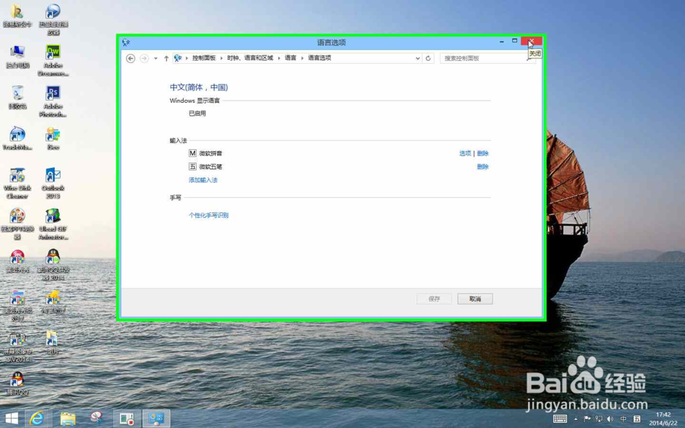 步驟 5: (2014/6/22 17:42:02)用戶在"關閉 (按鈕)"上左鍵單擊(在"語言選項"中)