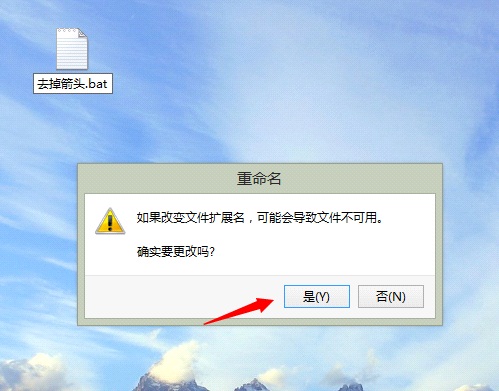 5. 保存修改后將“去掉箭頭”文件的后綴名改成bat并點擊“是”;