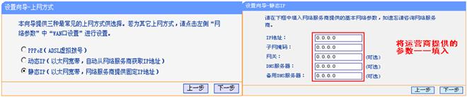 靜態(tài)IP要輸入運(yùn)營(yíng)商給您的IP地址、網(wǎng)關(guān)等參數(shù)