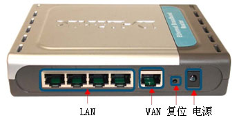 將一條以太網纜線的一端插入DI-504后面板上的WAN端口,另一端插入您的DSL/Cable modem上的以太網端口。DI-504前面板的WAN口的LED指示燈亮,表明操作正確。